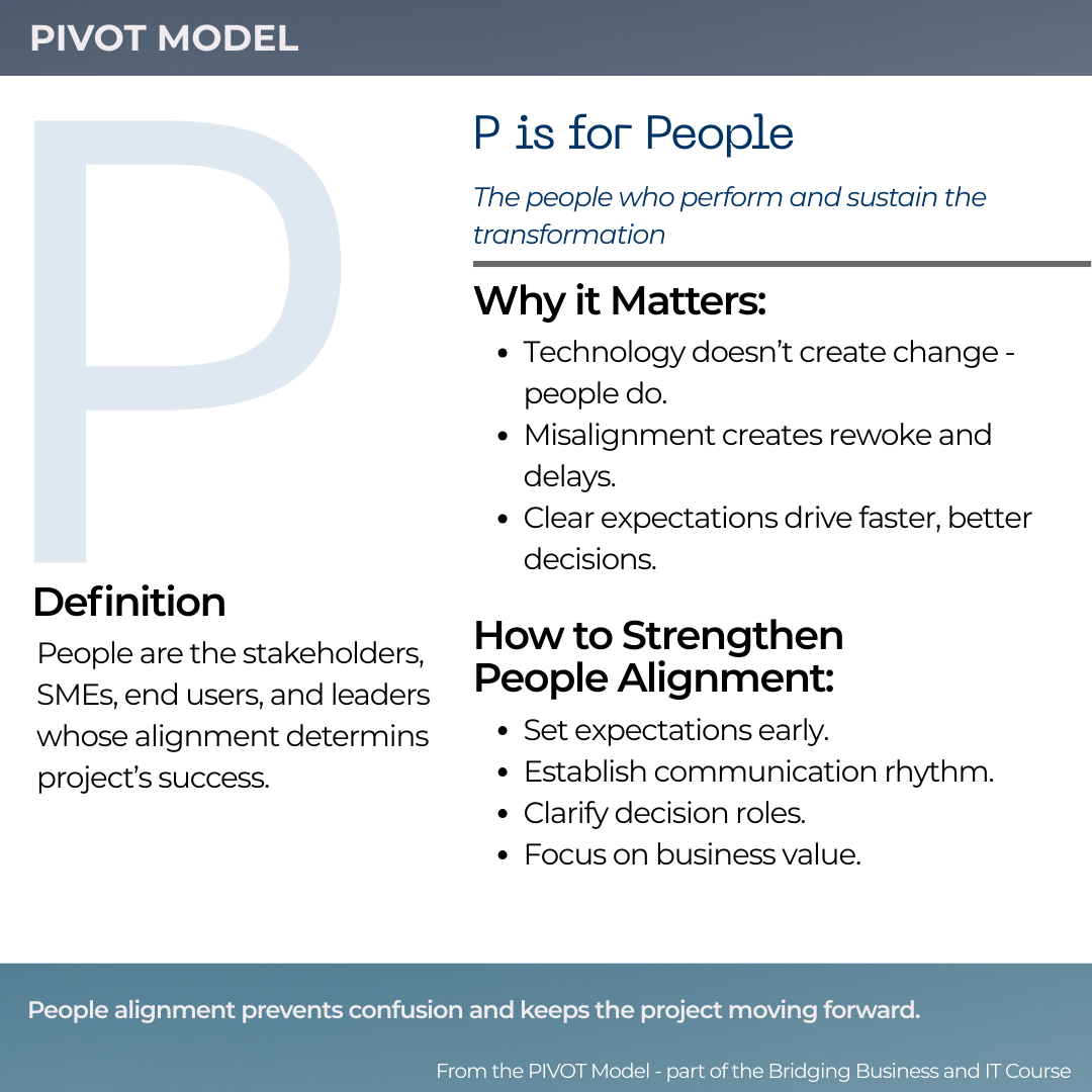 If you’re navigating a finance or ERP transformation and want a structured, business-driven lens, PIVOT is the foundation of my Bridging Business & IT framework.